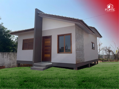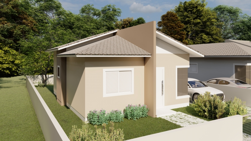 Residência unifamiliar em alvenaria com 01 pavimento térreo, cobertura com telha de concreto, forro em PVC, medindo 58,79m²